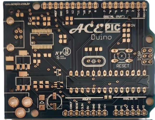 A ACEPIC desenvolve placas didáticas e profissionais para PIC, ESP32, Arduino e STM32, além de cursos para microcontroladores PIC e ESP32.